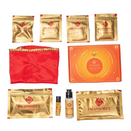 Invoke the blessings of Sankat Mochan (the Remover of Calamities) with the Pujashree Hanumanji Pooja Combo. This is a complete anushthan (ritual) kit dedicated to Lord Hanuman, the embodiment of shakti (strength), bhakti (devotion), and seva (selfless service). This puja is performed to gain courage, overcome fears, defeat enemies, and seek protection from all dangers and doshas (afflictions). This kit is curated with all the specific samagri (items) beloved by Bajrangbali.